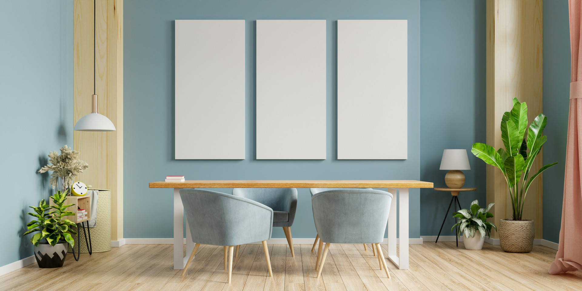 Et godt tip er at gentage bordets farve i små detaljer som lamper, puder eller kunst på væggen. Det binder rummet sammen og gør kontrasten mere naturlig.